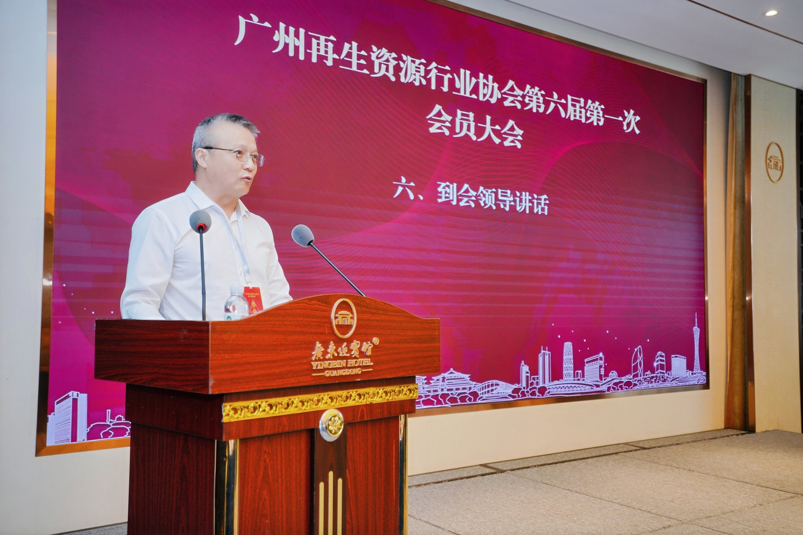 2025年12月11日,广州再生资源行业协会第六届第一次会员大会在广东迎宾馆隆重召开。本次大会全面回顾了协会过去五年的工作成效,选举产生了新一届理事会。市商务局流通业发展处处长、一级调研员黄飞、四级调研员莫果夫,市生态环境局生态环境监测与科技处处长陈璟璇,市城管局分类管理处二级调研员吕美好以及市供销总社再生资源管理处处长龚建林等领导应邀出席。